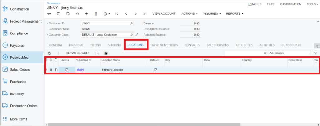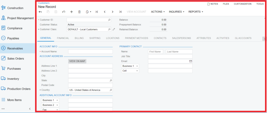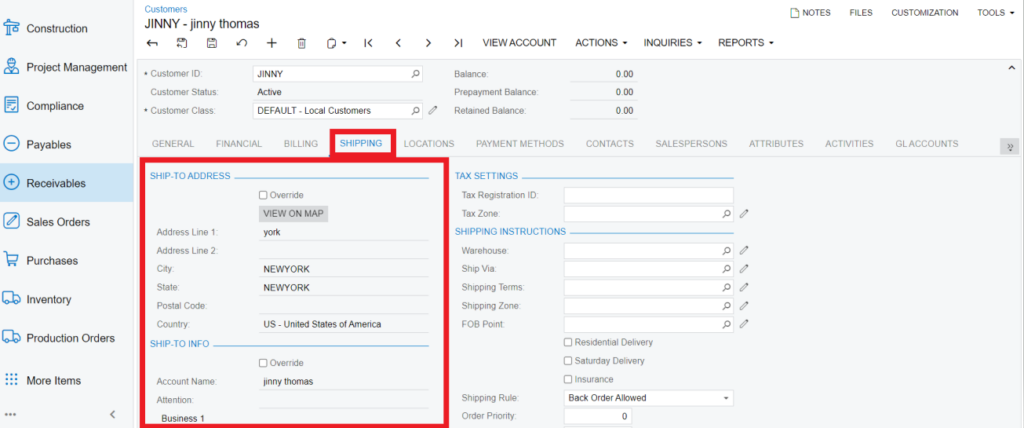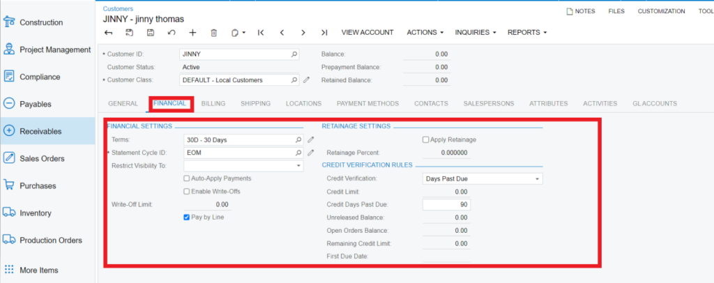 Step 4: In Financial tab, the settings are auto-populated via the selected customer class.